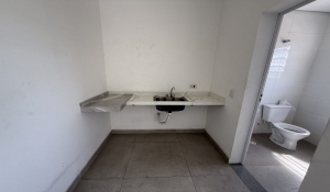 A estrutura conta com: Mezanino com sala e banheiro, Recepção, 2 banheiros no térreo, Área de apoio com pia e Energia trifásica.